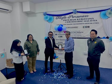 Traf Tech Academy and CIDB Holdings successfully inaugurated the Construction Traffic Management Officer (CTMO) Programme for Sabah state on July 15, 2025, marking a significant collaborative effort to elevate traffic safety standards at construction sites. The official launch ceremony, held at the Khayr Services Sdn Bhd Office, was officiated by Mr. Nazri bin Zakaria, Director of CIDB Sabah, who emphasized the crucial role of certified CTMOs in managing traffic and mitigating risks on public roads. The event showcased strong industry support with the attendance of key representatives from organizations including CIDB Sabah, JKR Traffic & Transportation, DBKK Traffic & Transportation, KSAFE SB, SAPTT, SP Setia, Azam Jaya SB, Sinkong JV Fleet SB, and Kontraktor Fokus Niaga SB. This strategic partnership aims to enhance the competency of construction personnel and is seen as a vital step towards a safer working environment, with the hope that this collaboration will serve as a turning point in empowering the CTMO role and improving overall traffic safety practices across Malaysia.