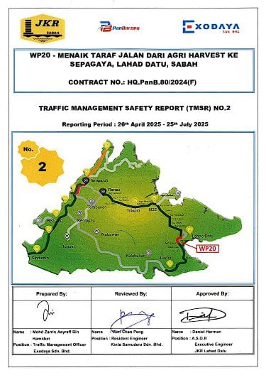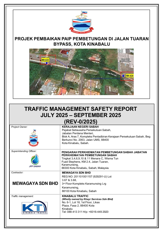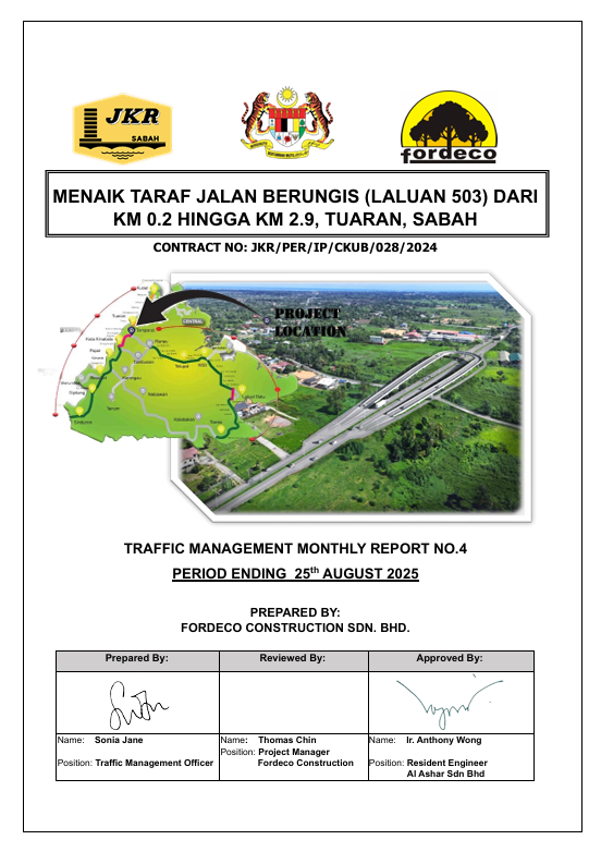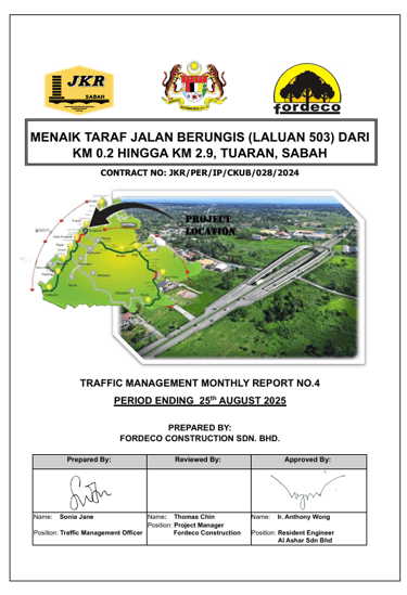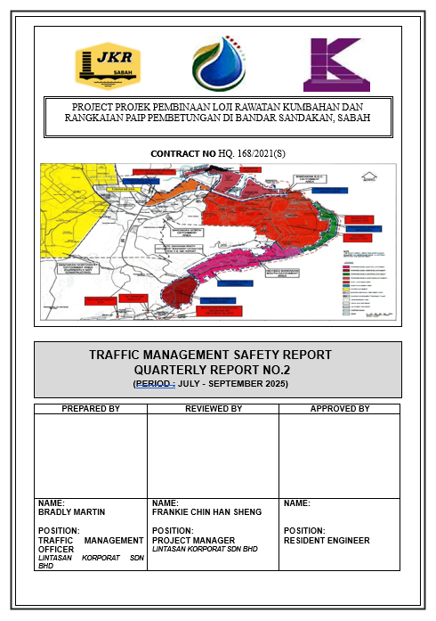 The Traffic Management Safety Reports (TMSR) is an essential document in the execution of the project. These reports are to be submitted at 3 monthly intervals to the S.O., the Supervision Engineers and the Road Safety Auditor. These reports are to be prepared by the Traffic Management Officer (TMO) and shall include the following: