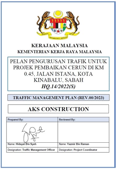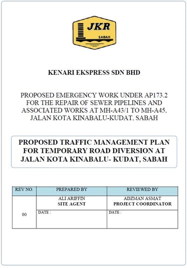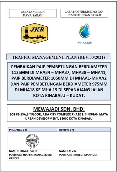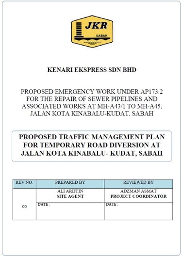Proposed Traffic Management Plan for ‘Proposed Emergency Work Under AP173.2 For Repair of Sewer Pipelines and Associated Works at MH-A43/1 to MH-A45, Jalan Kota Kinabalu-Kudat, Sabah.