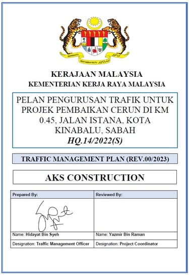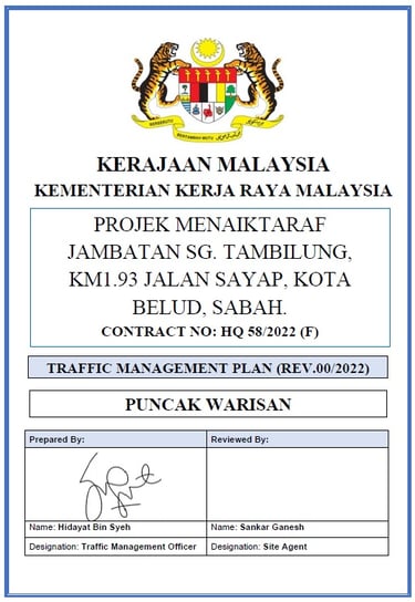 Proposed Traffic Management Plan for ‘Menaiktaraf Jambatan Sg. Tambilung, KM 1.93 Jalan Sayap, Kota Belud, Sabah.