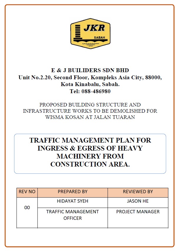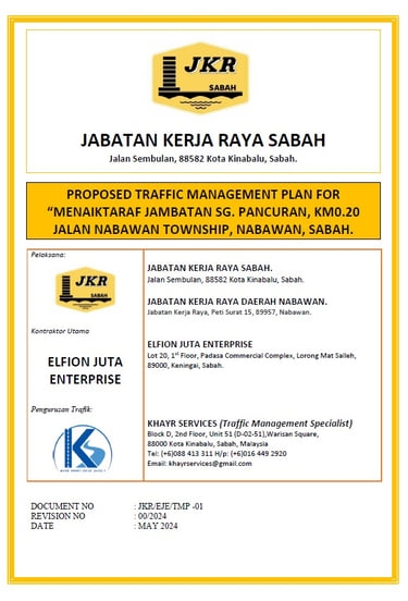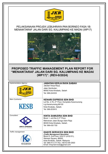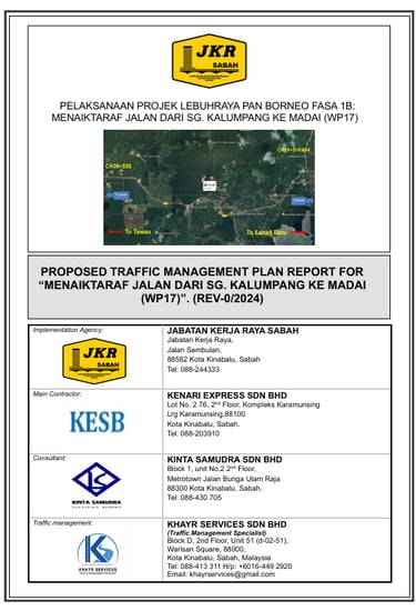 Proposed Traffic Management Plan Report for "Menaiktaraf Jalan dari Sg. Kalumpang ke Madai (WP17)."