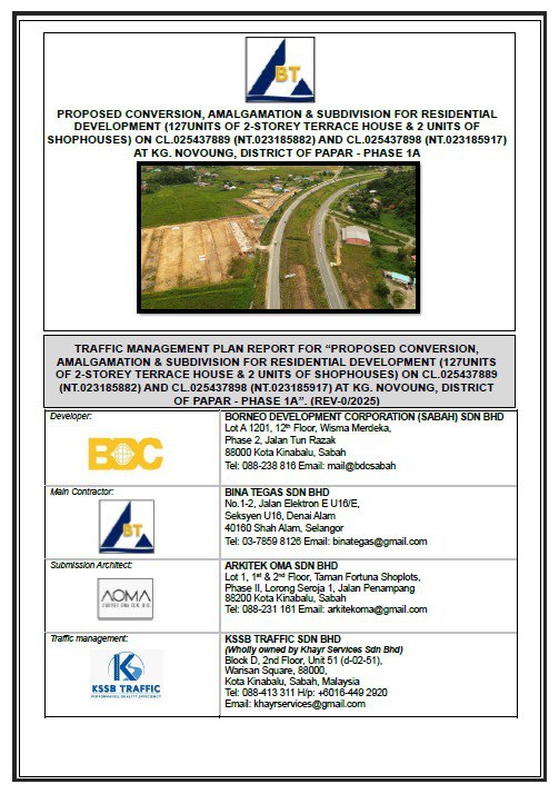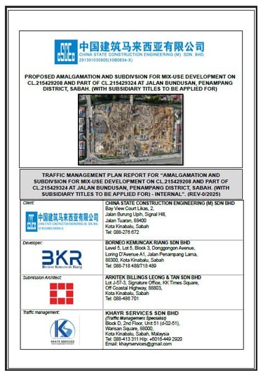 Traffic management plan report for “amalgamation and Subdivsion for mix-use development on cl.215429208 and part of Cl.215429324 at jalan bundusan, penampang district, sabah. (with Subsidiary titles to be applied for) - internal”. (rev-0/2025).