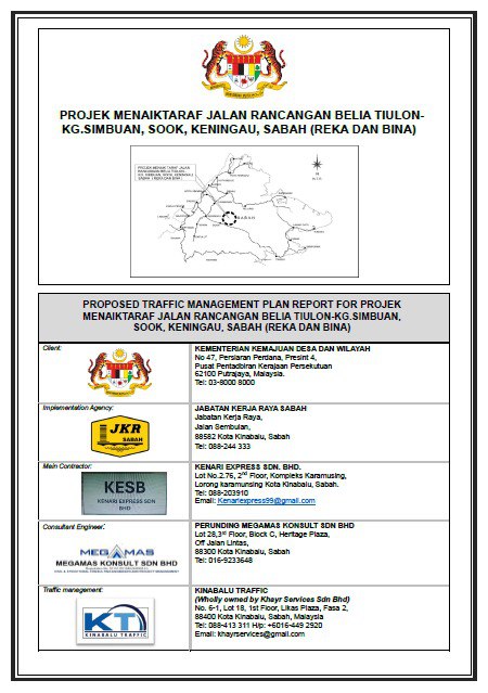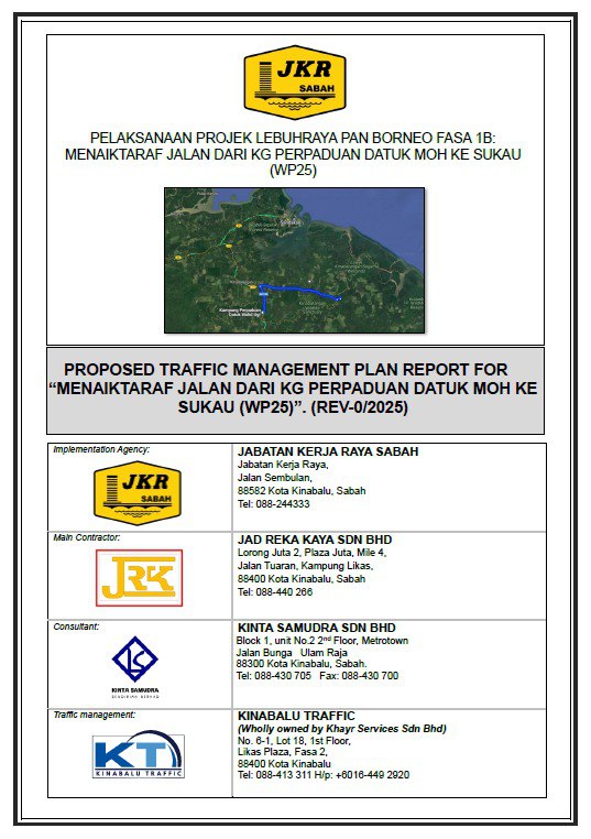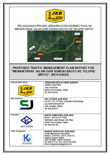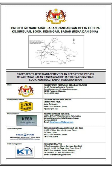 Proposed Traffic Management Plan Report for "Projek Menaiktaraf Jalan Pekan Pensiangan-Kg Lampas-Kg. Sikalabaan, Nabawan, Sabah. (Reka dan Bina)".