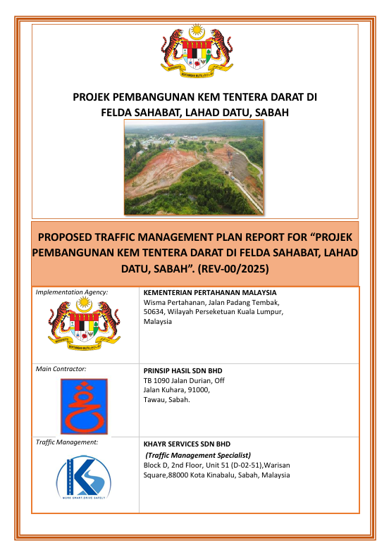 Proposed Traffic Management Plan Report for "Projek Pembangunan Kem Tentera Darat di Felda Sahabat, Lahad Datu, Sabah."