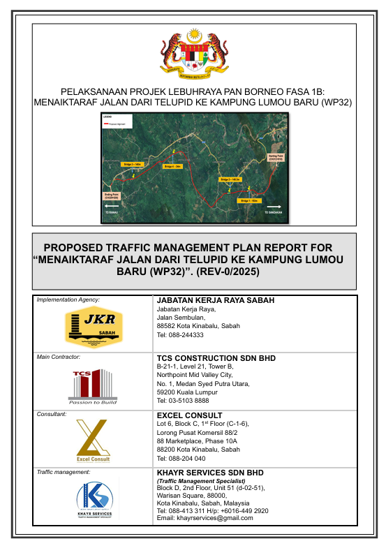 Proposed Traffic Management Plan Report For " Menaiktaraf Jalan dari Telupid ke Kampung Lumou Baru (WP32)".